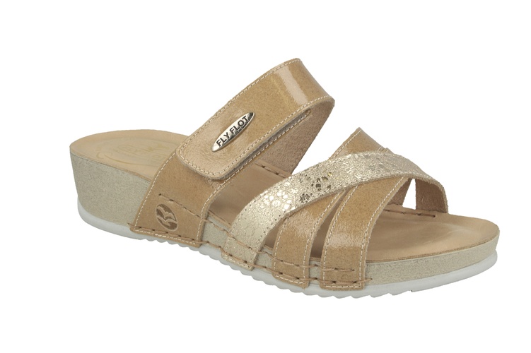 I am 100% happy with these slippers. Nice colour combination of white, grey and silver. Fit my feet absolutely perfect in combination with the adjustable strap. Very comfortable foot bed. Great for walking long distances. These slippers are a dream for my feet, especially now with my broken left knee. Other comfort shoes are so hard to walk with, but my Fly Flots are ideal. I never want to wear any other brand any more! Fly flot forever!